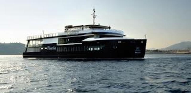 This entertainment cruiser was exclusively designed, built and launched in 2011 to offer prestigious events and dinners. Amenities include a Reception Area, Main Deck Dining Area for 140 guests and the Upper Deck for 120 guests, seated in 4-6-8 groups tables; two Cocktail Lounges, one on the Aft Deck for 100 guests (seating 60) and another on the Sun Deck for 250 guests (seating 150) in tall tables and stools; with a total capacity of 350 guests.