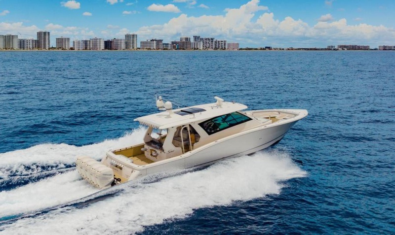 New features for 2021 include, Power cabin door, port overhead storage cabinets, tempered frosted glass doors on both head and shower, new user-friendly galley layout, king bed in master and lighted Logo on helm which lets you know your powered up. Al so this is the only vessel with Koolair run dry pumps and a system that allows you to run you’re a/c unites on your lift. Powered with Quint Mercury 400Hp Joystick/sky hook, bow thruster and seakeeper plus much more, for more standard option list visit scout online for a detailed list.