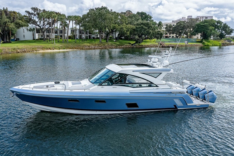 Don’t miss out on this opportunity! This 43 Formula 430 All Sport Crossover 2022 is in Like-New condition and is one of the most versatile vessels on the water. She has the layout and equipment for every aspect of boating you can think of. Cruising, fishing, sadbaring, overnighting, performance, luxury, technology, you name it. Only 190 hours on Mercury quad 450’s with merc joystick control. There are extended warranties on both boat and motors. Equipped with diesel Kohler generator, Seakeeper 6 gyrostabilizer, bow thruster, Flir night vision,SAT TV, outriggers, underwater lights, livewell, and bait prep station, cockpit A/C, electric sunroof, electric aft shade, fully appointed cabin, the list goes on and on. See full specs for details.
