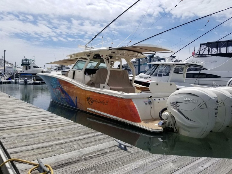 SHADY LADY II is a loaded out one-of-a-kind Scout 380 LXF. Upgraded power with the white Yamaha XF 425’s she skims through the water effortlessly. Custom hull wrap (White Gelcoat Hull Under Wrap) Garmin electronics package, Seakeeper 3DC, 8kw diesel generator, 4 LED underwater lights Lumishore, retractable Rocket Launcher, Integrated 6ft electric aft sunshade, one of a kind forward retractable 12 ft. electric Sureshade, On deck hot water shower, taco 380XL Cranking Outriggers, Molded in Tow Hook, 50ft Shore Power cord reel, 60/40 split transom baitwell, bow table and lounge with filler cushion, hydraulic beach platform, helm seat covers and side canvas panels. Give a call today to schedule an appointment to see SHADY LADY II.