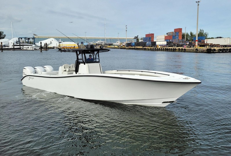 New to the market, the 36′ Yellowfin is one of the most sought-after center console boats, offering outstanding performance and fuel efficiency. The hull is a twin-step, deep-vee style composed of vinyl resins and Core-cell composite material, for superb strength and agility. It will cruise easily at 30 miles per hour in 4–5-foot seas, tossing aside the sea spray for a comfortable ride.