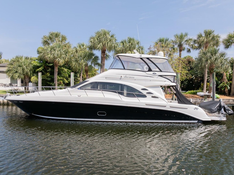 Everything about the Sea Ray 580 Sedan Bridge seems expansive; large flybridge accommodations, an open salon with facing leather sofas, a gourmet galley, and a three-stateroom layout allowing for trips with complete comfort.