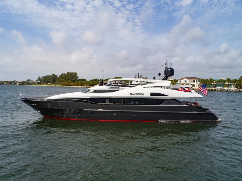 TEMPTATION is the most beautiful raised pilot house in her class! She radiates excellence from her attractive freshly custom painted exterior (2020) to her gorgeous high gloss cherry wood finished interior. All new American walnut hardwood floors throughout (2016). She sleeps eight in the owner’s party, featuring a stunning owner’s suite on deck, a full beam VIP stateroom below and two additional queen bed guest staterooms below deck. TEMPTATION has been continually upgraded and maintained with no budget and is ready for world travel at optimum luxury. No expense was spared in her numerous refits in 2012, 2016 and 2020 and the current owner has pampered her with over $2 Million+ of care and proper scheduled maintenance.
