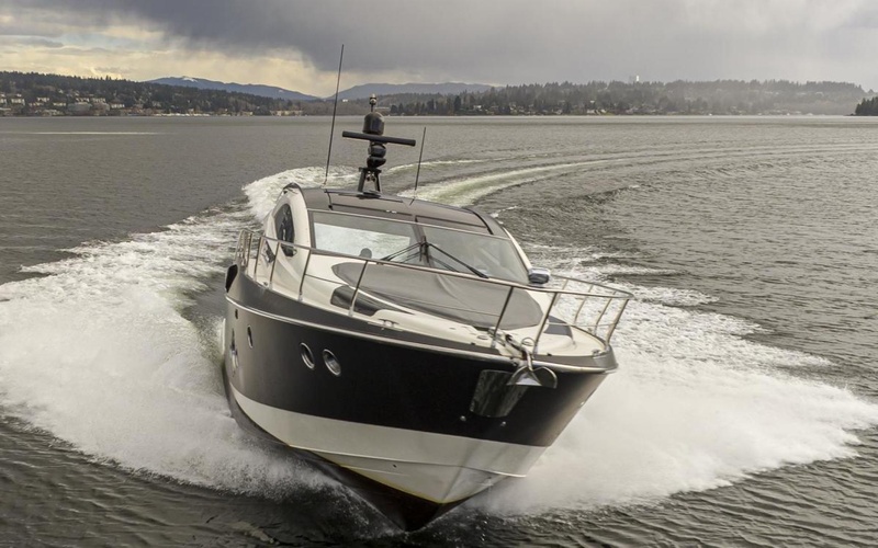 ‘The Belly’ is a freshwater kept, US built motor yacht which was designed by the famous superyacht designer Nuvolari-Lenard in Italy. Her semi-V hull with a solid fiberglass bottom and Volvo Penta IPS drives means this yacht is not only is a good sea going vessel, but she is very easy to maneuver too. ‘The Belly’ features a unique sliding transom that glides aft with a push of a button to create additional cockpit space. The well-appointed interior features dark Zebrano wood, black granite counters, and cherry flooring throughout. Her three cabin and two head layout with large entertaining spaces means she is a perfect yacht for entertaining and also for longer cruises to the islands with family and friends.