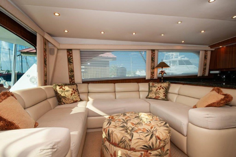 “What’s Your Point” is your opportunity to own a popular 61 Viking with factory mezzanine. Preferred three stateroom three head layout with VIP stateroom that includes over/under berths forward. Large master stateroom with ensuite head. With her custom Viking premier edition décor, upgraded CAT C-32 engines 1675 HP, Palm Beach tuna tower, AME Electronics package, sea foam green hull, and many additional options make this boat a must-see for anyone planning the purchase of a 61 Viking. Caterpillar 3000-hour service has been performed and the boat was completely painted in 2017.